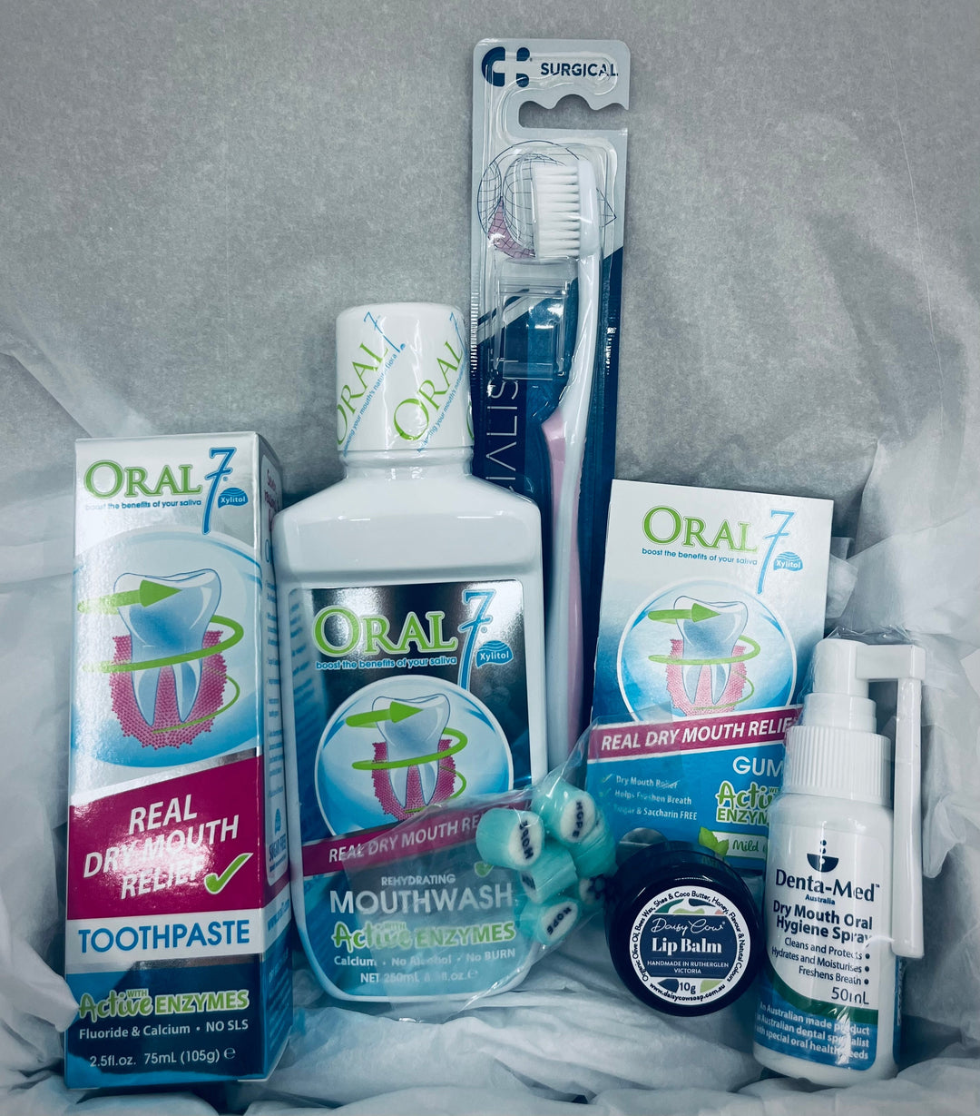 Regular Mouth Care – Using a saltwater rinse after you eat (3-4 times a day) can help maintain good mouth care. Although, if you start to get ulcers, you may want to start using an alcohol-free mouthwash like Oral 7® Mouthwash or Denta-Med™. We would also recommend using a soft toothbrush, like the Curaprox Surgical Toothbrush, accompanied with a gentle toothpaste (we offer Oral 7® Moisturising Toothpaste). For more information, check out our Mouth Care collection.